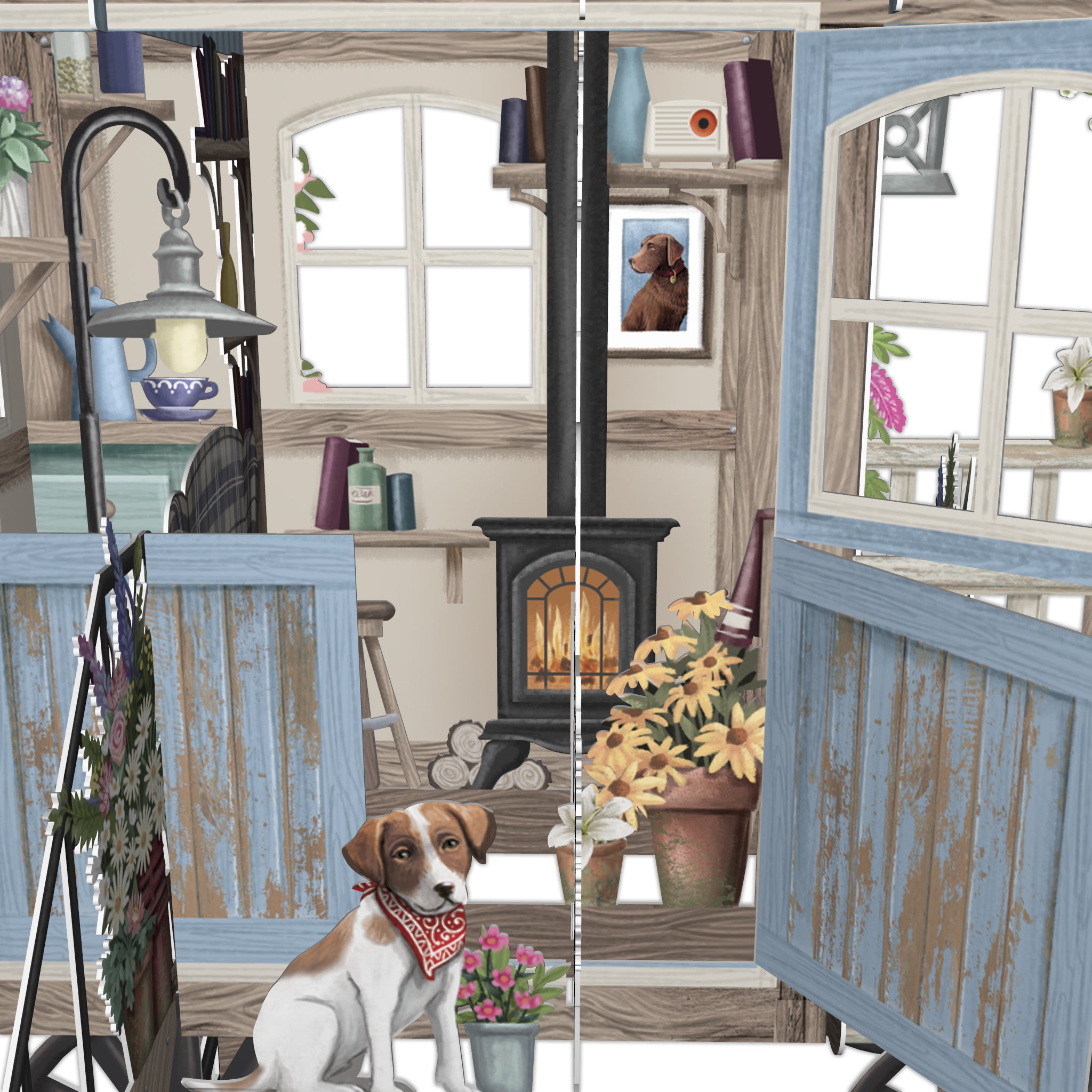 The Shepherd's Hut has everything one could need to kick back and have a perfect day;  classic books, delicious coffee brewed on top of the wood burning stove, a inviting chair with cashmere throw, fragrant colourful flowers and Sashi the Jack Russell for company.  This is a little piece of Cotswold heaven in an envelope.