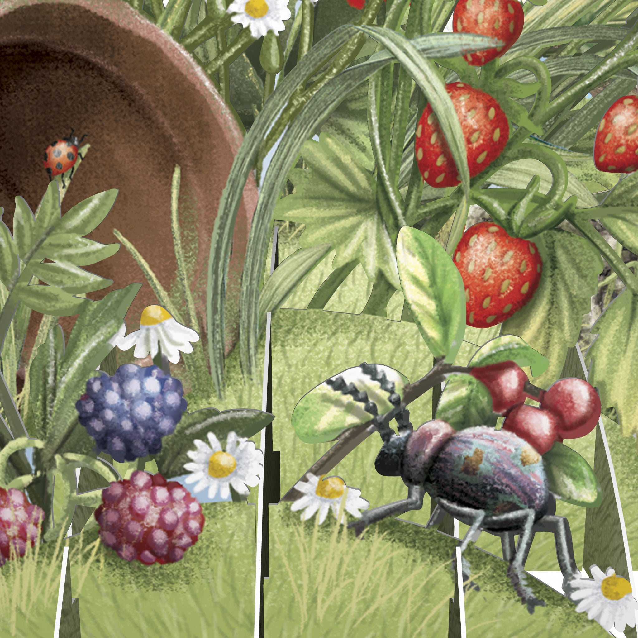 A symphony of colour and life unfolds as you open this delightful greeting. Butterflies flutter, bees buzz, and a sweet field mouse peeks from amidst a profusion of vibrant wildflowers. Poppies, daisies, Devil's Bit scabious and more create a stunning scene that captures the essence of a sunny summer day. Our eponymous 'Beetle' is in there too if you look close enough.